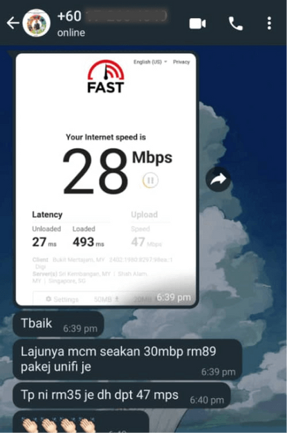 “Lajunya mcm seakan 30mbps RM89 pakej unifi je” – Atar