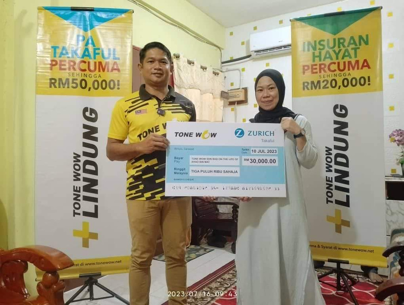 Tone Wow menyediakan dua jenis perlindungan kepada pengguna iaitu Pa Takaful dan Takaful Hayat Kemalangan Diri secara percuma.