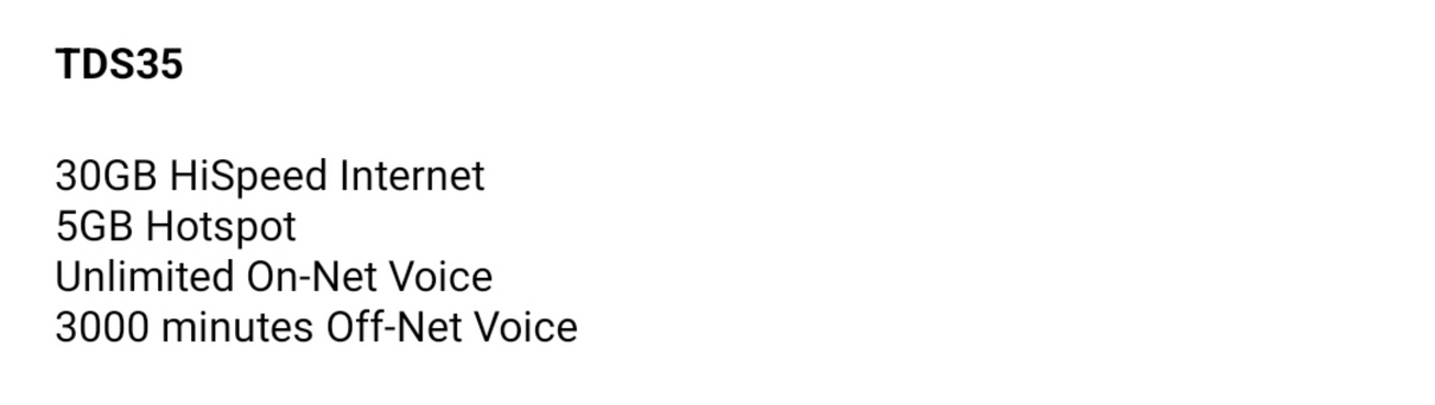 Ada boleh pakai "PAKEJ TDS35" hanya RM35 sebulan