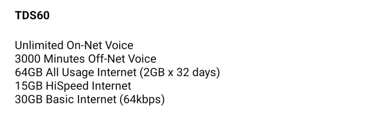 Ada boleh pakai "PAKEJ TDS60" hanya RM60 sebulan